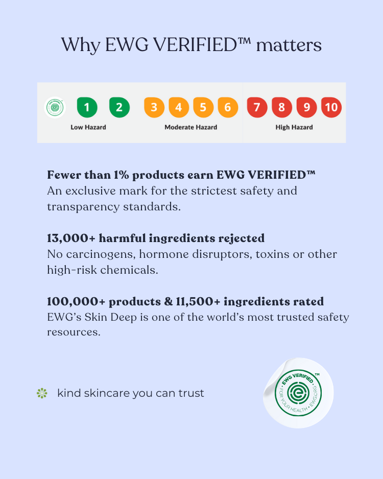 EWG VERIFIED™ - The mark means no harmful chemicals, full transparency, and vetted natural ingredients.